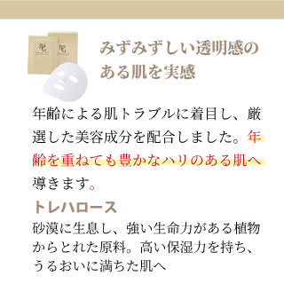 うるおいに満ちた豊かなハリのある肌へ導くフェイスマスク。5枚入りなので、小分けにして義理ギフトにも。